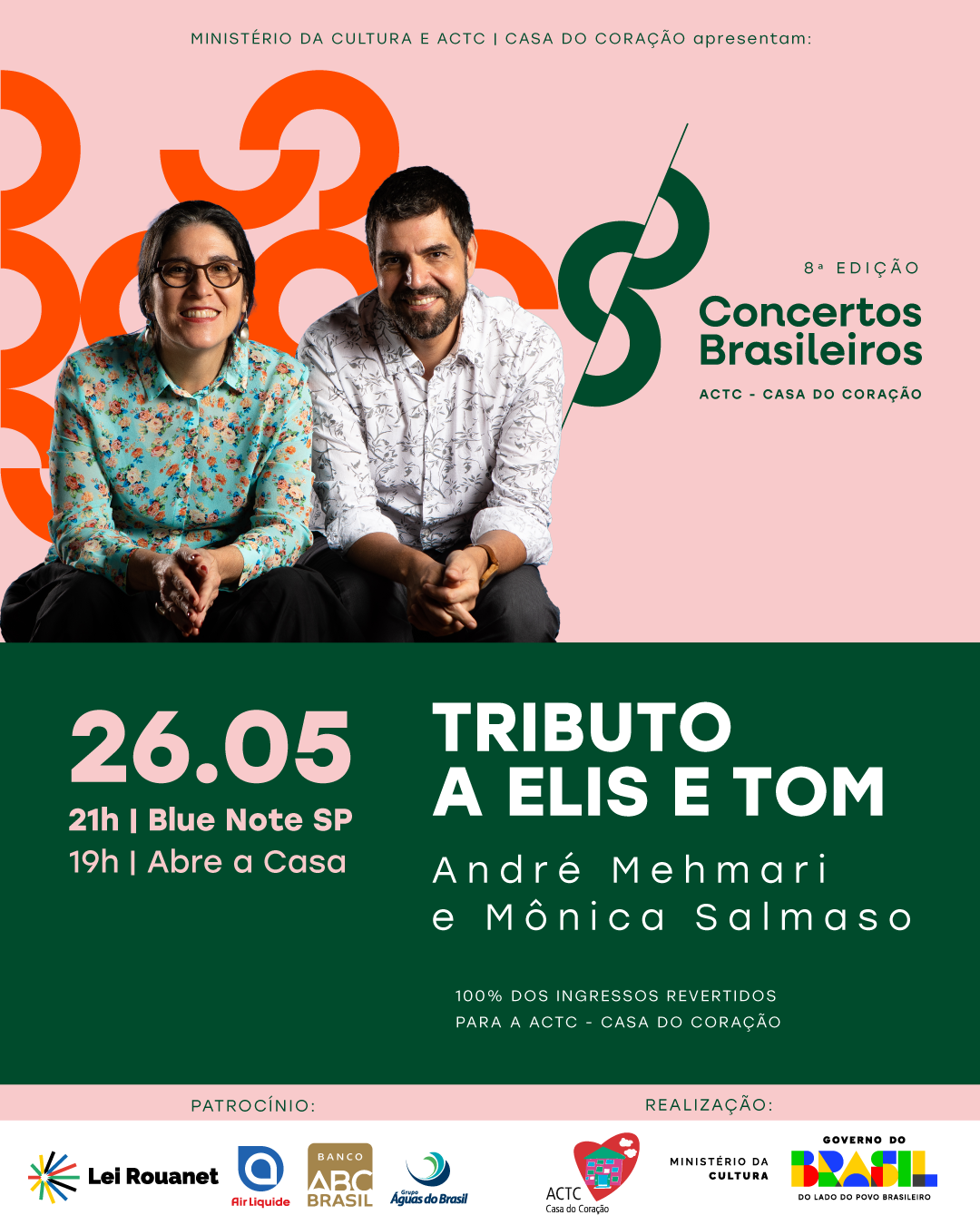 Criados em 2014 pela ACTC – Casa do Coração, os Concertos Brasileiros promovem a cultura brasileira e reverte o valor arrecadado para as atividades da Casa.